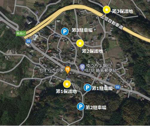 ホタル鑑賞に車でお越しの場合には、指定された駐車場に駐車して頂き、ホタル保護地周辺への車の乗り入れはご遠慮下さい。