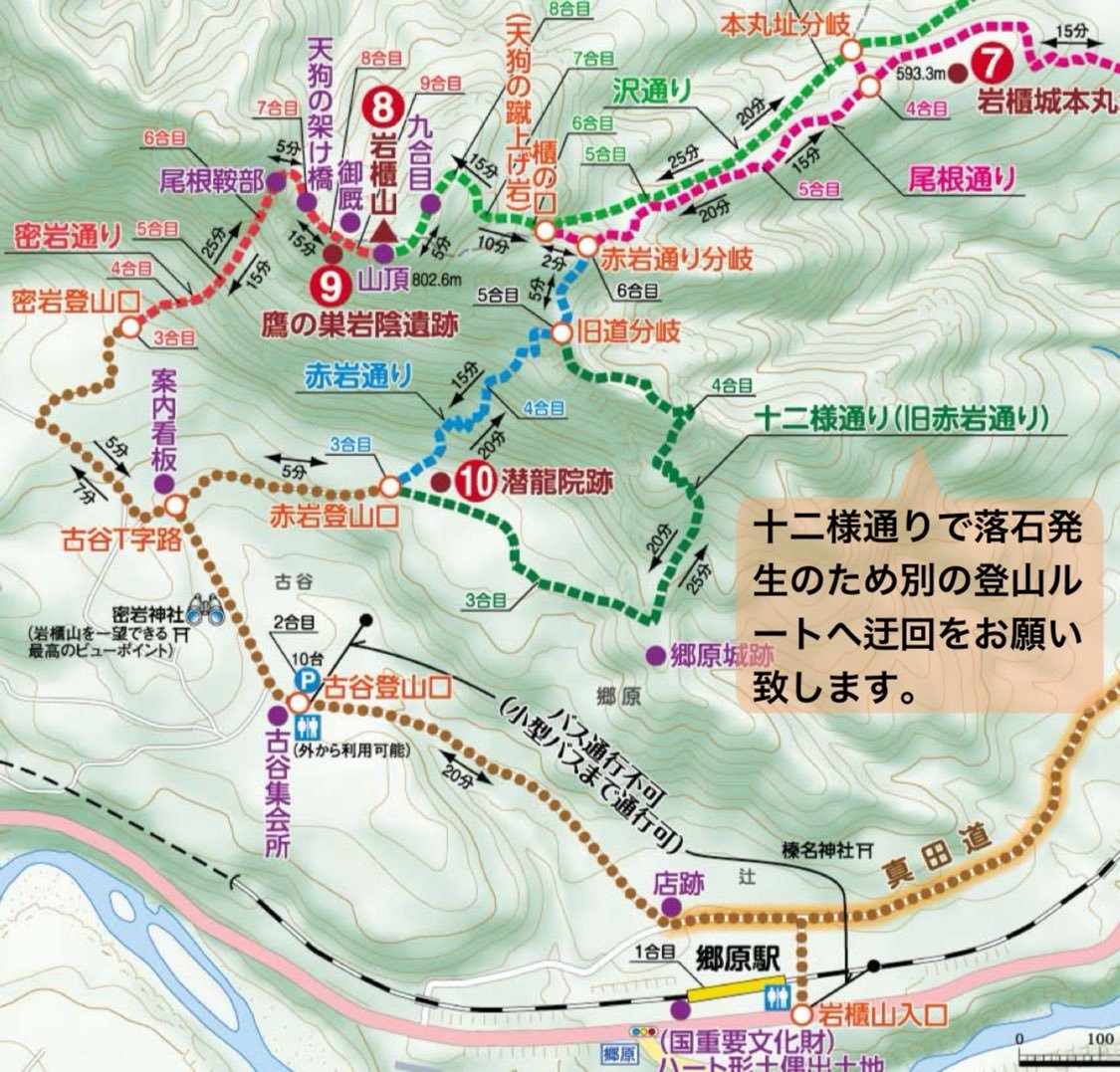 TOP 東吾妻の魅力 みる・たのしむ 泊まる・やすむ 食べる 観光パンフレット 観光ボランティアガイドの会 路線バス 岩櫃山 十二様通り通行止めのお知らせ 十二様通りで落石が発生しているため別ルートへ迂回をお願い致します。 ご理解ご協力をお願い致します。 詳しくは東吾妻町役場HPへ 東吾妻町役場HP 作成日2024.8.10 ページトップへ
