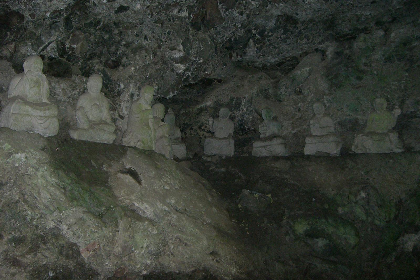入口の高さ約8メートル、深さ26メートルの洞窟で、夏でもひんやりする窟内に延宝6年(1678年)の石像の十八羅漢や聖観世音などが安置されています。