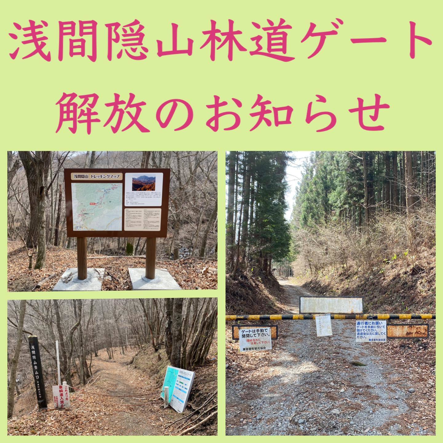 【解除】浅間隠山林道ゲート開放のお知らせ