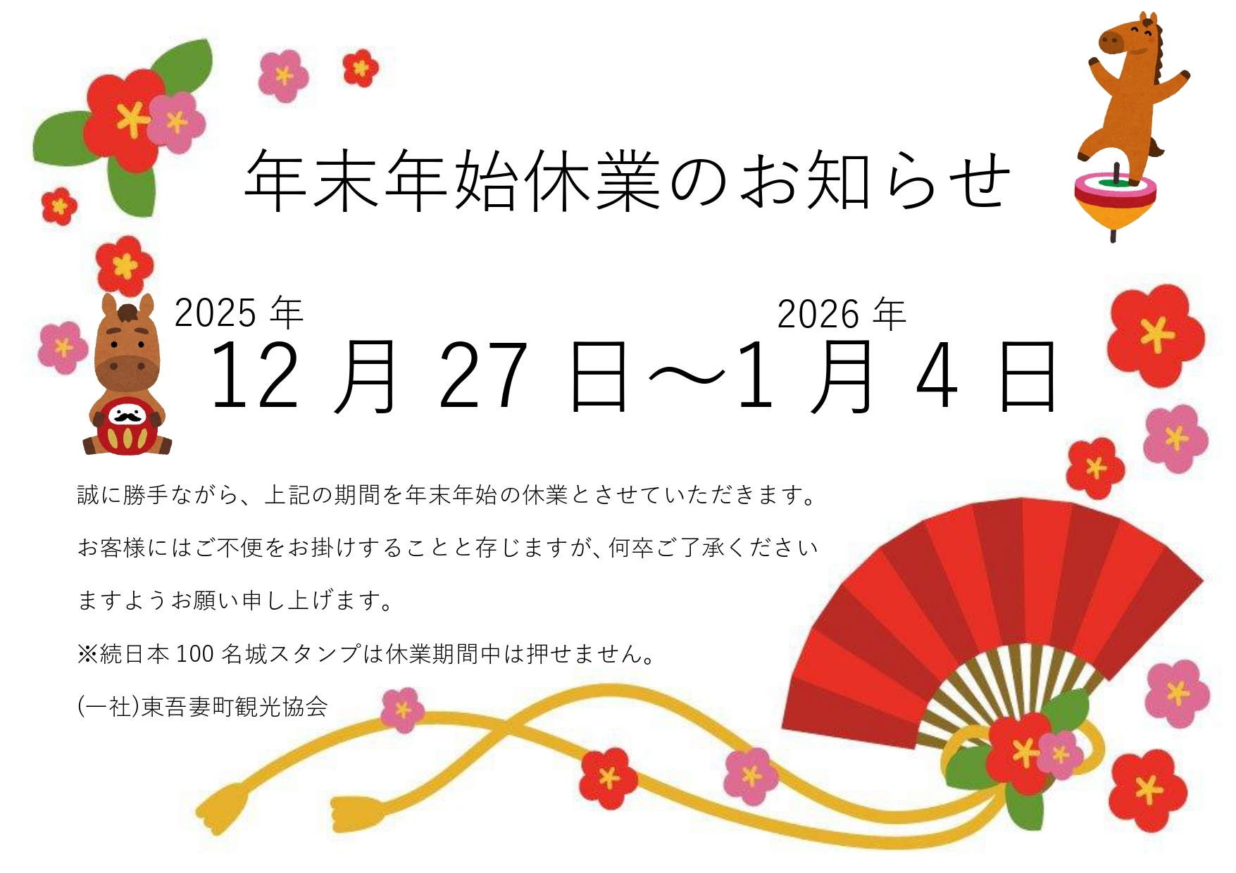 東吾妻町観光協会は年末年始はお休みさせていただきます。
